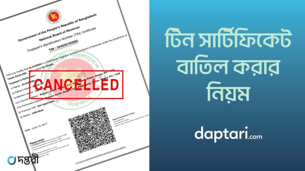 30 Jul Blog টিন সার্টিফিকেট বাতিল করার নিয়ম Posted by Daptari Consultancy July 30, 2022 স্থায়ীভাবে আপনার করযোগ্য আয় না থাকলে টিন সার্টিফিকেট বাতিল করতে পারেন। জানুন কিভাবে টিন সার্টিফিকেট বাতিল করা যায়। আপনার করযোগ্য আয় নে... Continue reading