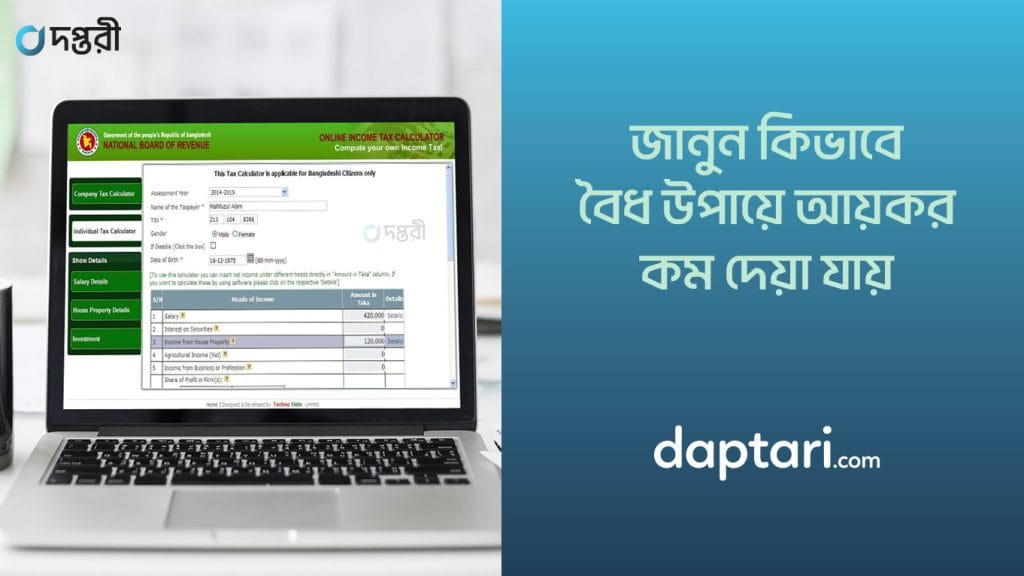 30 Jul Blog জানুন কিভাবে বৈধ উপায়ে আয়কর কম দেয়া যায় Posted by Daptari Consultancy July 30, 2022 আয়কর রেয়াত বা আয়কর ছাড় সম্পর্কে সঠিক ধারণা না থাকার কারণেই অনেককে বেশি আয়কর দিতে হচ্ছে। জানুন আয়কর রেয়াতের খাত সমূহ কি এবং কিভাবে আয়ক... Continue reading
